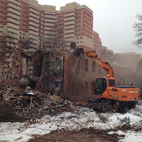 Компания "Maxus" в августе 2014 г. произвела демонтаж 2 многоквартирных домов и реновацию территории в г. Москва. Объем здания 98 529 м³. Срок выполнения: 35 дней.